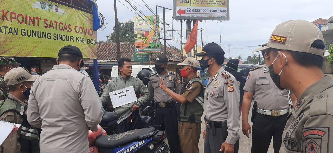 Ops PPKM dengan menyekat dan memeriksa mobilitas kendaraan pribada yang keluar masuk wilayah Kab. Bogor dengan memeriksa kelengkapan surat keterangan rapid test antigen dan transportasi antar wilayah, memutar balikkan kendaraan yang tidak mematuhi peraturan dan memberikan teguran dan tindakan disiplin kepafa warga masyarakat yang tidak mematuhi protokol kesehatan.