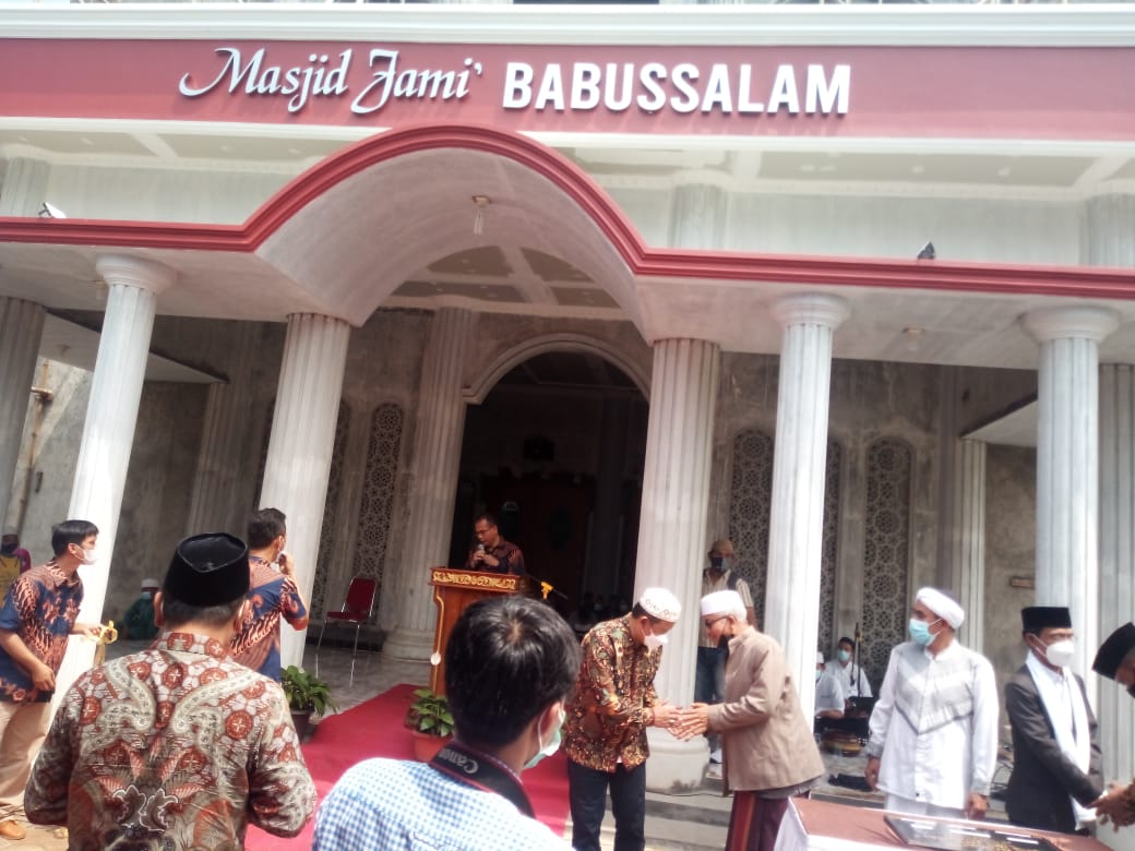 Bogor-Peresmian masjid jami Babussalam perumahan Wonderland palace kelurahan tengah kecamatan Cibinong kabupaten Bogor, Minggu (11/04/21).