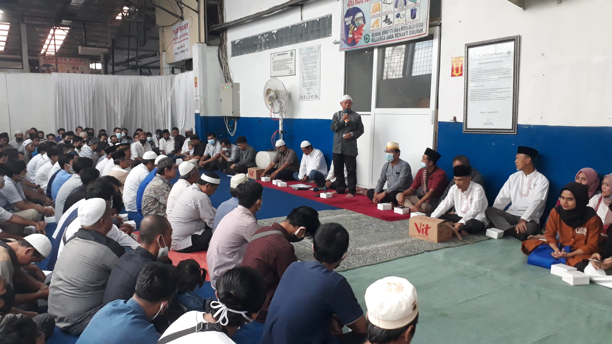Keluarga besar PT.Dwi Prima Rezeki melaksanakan kegiatan buka bersama dan pembagian uang hasil penjualan limbah kepada 330.Karyawan Senin, 10/05/2021.
