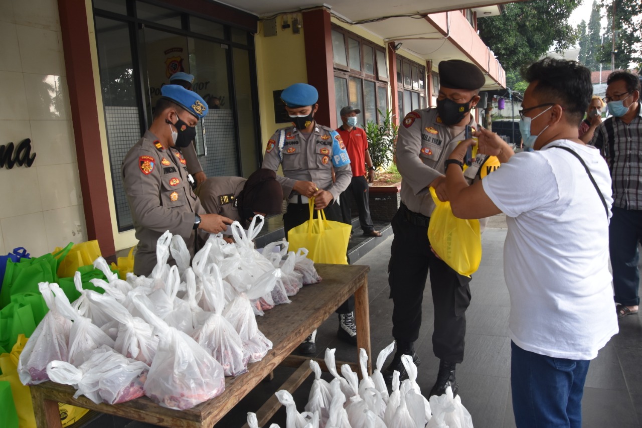 CibinongPolres Bogor yang lakukan penyembelihan hewan kurban di hari Raya Idul Adha 1442 H, peruntukan hasil daging kurban bagi masyarakat dan wartawan yang terdampak pemberlakuan PPKM Jawa- Bali