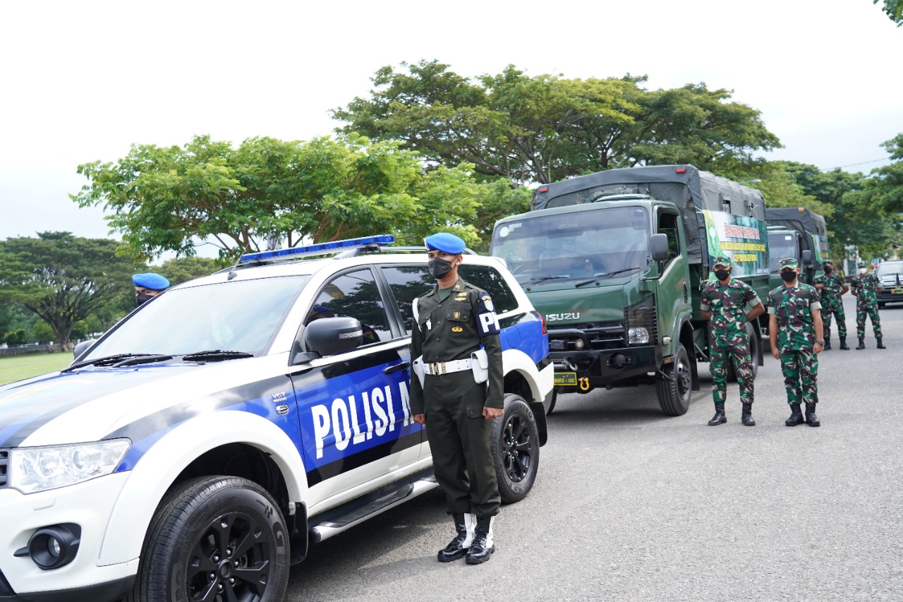 Saat pelepasan, Pangdam IM didampingi Kapoksahli Pangdam IM, para Asisten, para Kabalakdam IM, LO AL, LO AU, Dandim 0101/KBA.
