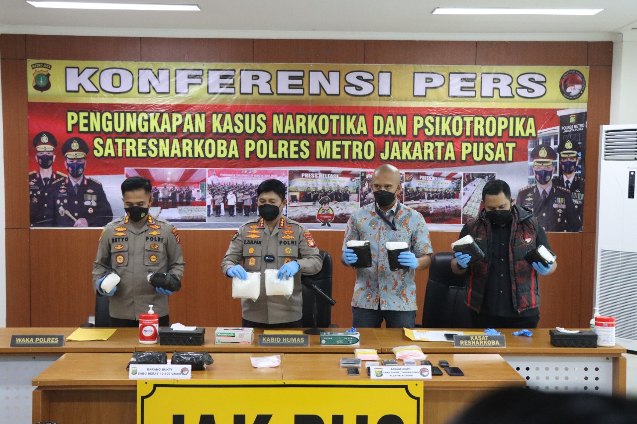 Dalam konferensi pers tersebut turut hadir KBP. Endra Zulpan, S.I.K, M.Si. selaku Kabid Humas, AKBP. Setyo K. Heriyatno S.H, S.I.K, M.H selaku Wakapolres Metro Jakarta Pusat, dan Kompol Indrawienny Panjiyoga, S.H., S.I.K. selaku Kasat Narkoba.