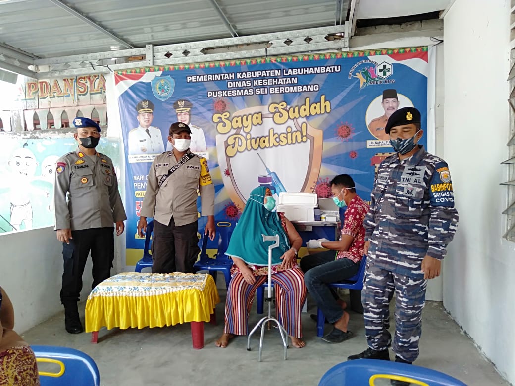 Sementara Babinpotmar Posal Sei Berombang Serda Syahbuddin juga dampingi 30 orang vaksin warga pesisir dengan rincian dosis 1 Pfizer sebanyak 7 orang, dosis 2 sebanyak 6 orang, Sinovac dosis 2 sebanyak 12 orang dan Astrazeneca dosis 2 sebanyak 5 orang di Puskesmas Sei Berombang Kecamatan Panai Hilir.