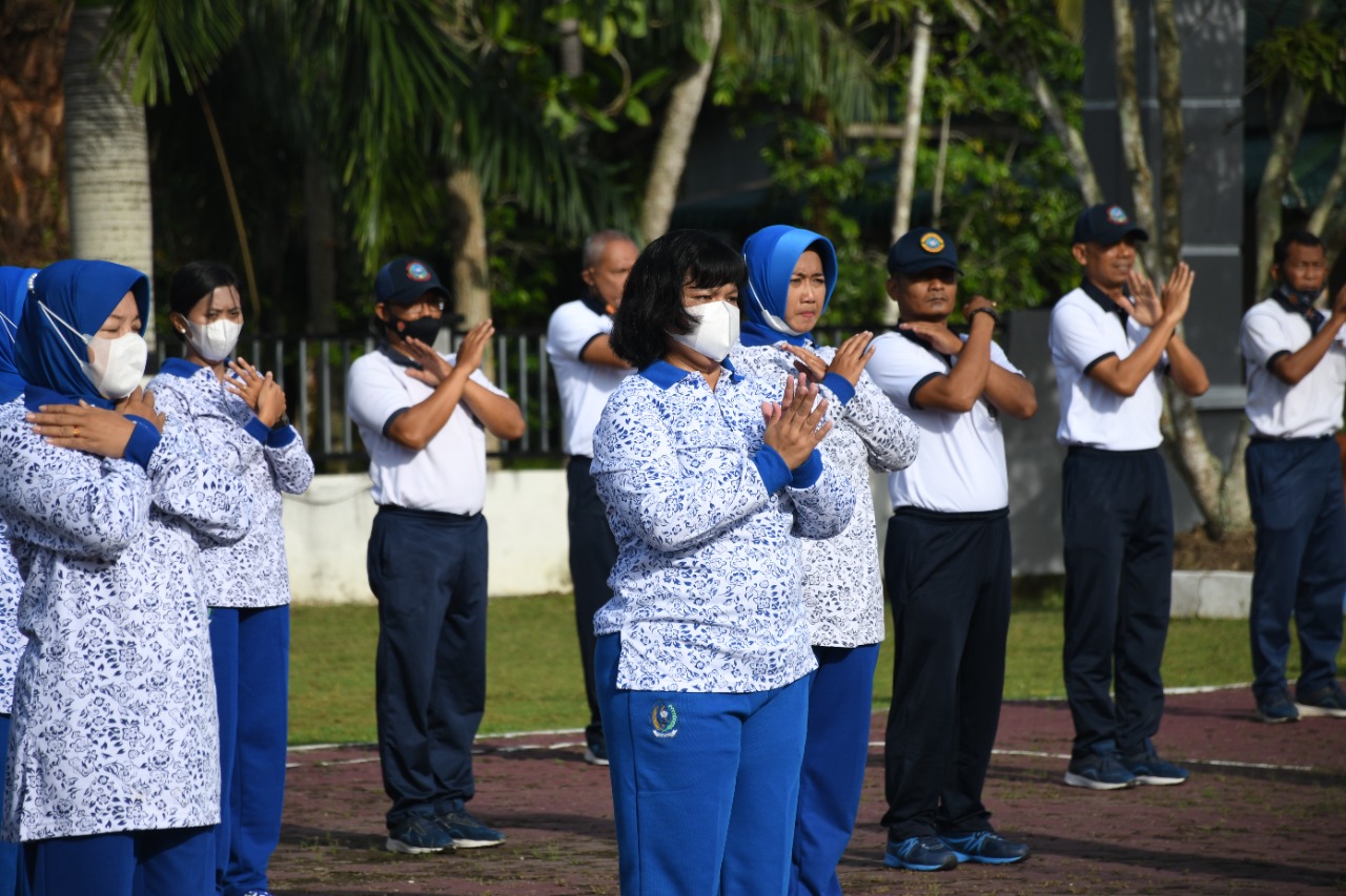 Prajurit Lanal TBA dan Ibu-ibu Jalasenastri Cabang 7 Korcab I DJA I olahraga bersama Senam SKJ 88, turut serta Danlanal TBA Letkol Laut (P) Aan Prana Tuah Sebayang dan Ketua Cabang 7 Korcab I DJA I Ny. Elisa Aan Prana Sebayang yang berlangsung di Lapangan Apel Mako Lanal TBA, Jumat (11/02/2022).