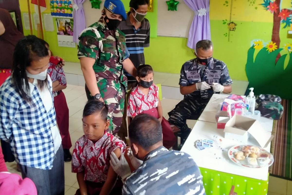 Sebanyak 385 anak yang duduk di sekolah dasar usia 6 sampai dengan 11 tahun kembali tervaksin oleh serbuan maritim Tim Kesehatan Lanal Babel. Dosis pertama dan kedua diterima oleh anak-anak di bangku Sekolah Dasar tersebut, menggunakan vaksin Sinovac melibatkan 14 tenaga kesehatan yang dipimpin langsung oleh Kepala Balai Kesehatan Lanal Babel Lettu Laut (K) dr. HRP. Pardede, dibantu 4 orang vaksinator dan 9 orang tenaga administrasi dari Lanal Babel dan Dinas kesehatan Kabupaten Bangka.