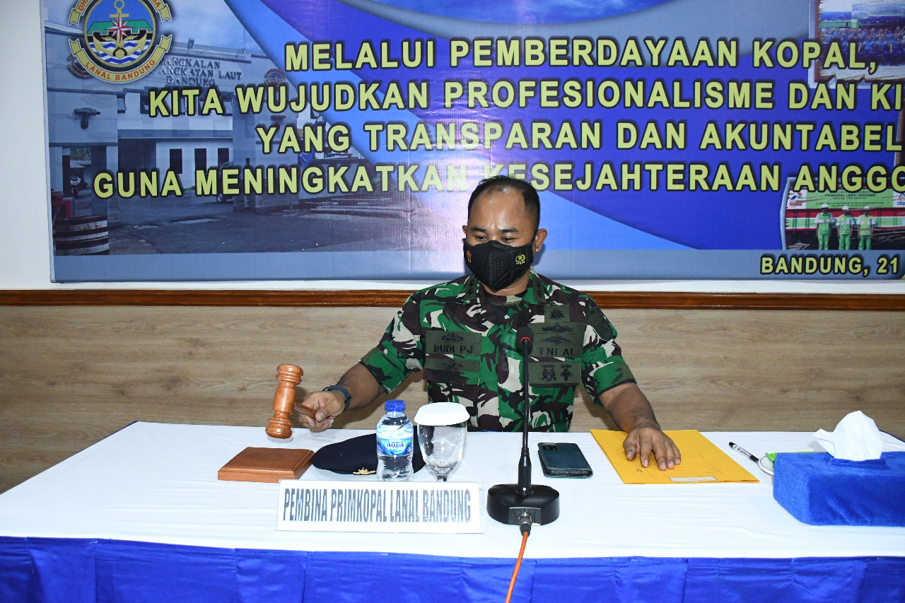 Markas Komando Pangkalan TNI Angkatan Laut (Mako Lanal) Bandung menggelar acara Rapat Anggota Tahunan (RAT) Primkopal Tahun Buku 2022, dengan mengusung tema “Melalui Pemberdayaan Kopal, Kita Wujudkan Profesionaliesme dan Kinerja Yang Transparan dan Akuntabel Guna Meningkatkan Kesejahteraan Anggota Kopal”, yang dilaksanakan di Aula Mako Lanal Bandung, Jalan Aria Jipang No. 8 Kota Bandung, Senin (21/02/2022).