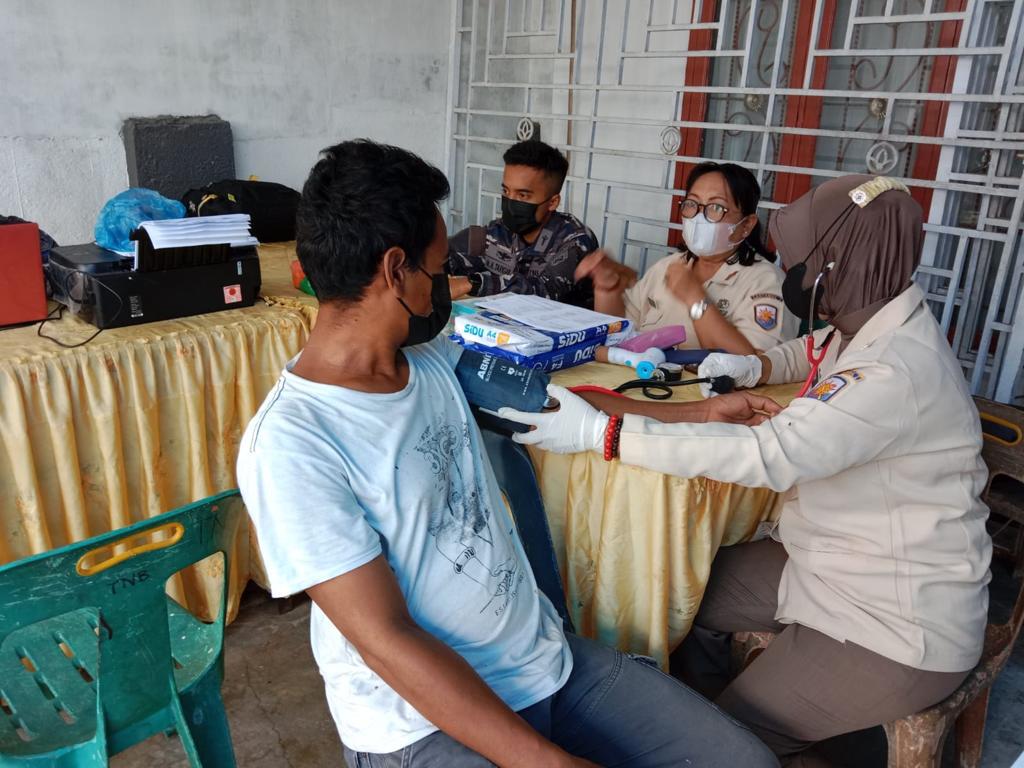 Pangkalan TNI AL Lanal Tanjung Balai Asahan kembali hadir melalui serbuan vaksinasi maritim yang menyasar masyarakat pesisir di Kelurahan Perjuangan, Kecamatan Teluk Nibung, Kota Tanjungbalai, Selasa (8/3/2022).