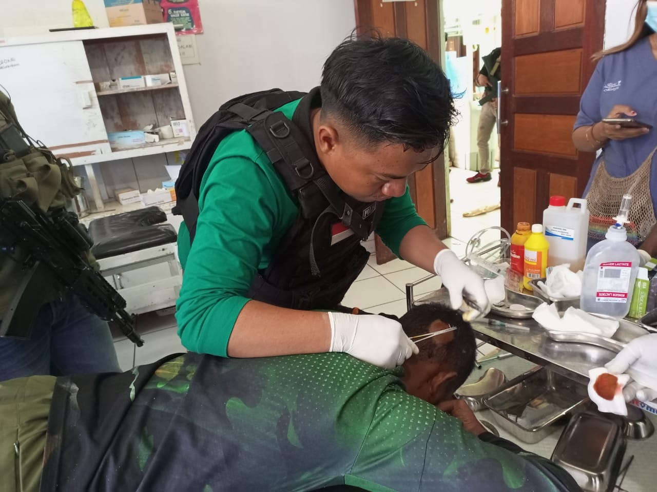 Korban penembakan yang terjadi Personel Satgas Binmas Iptu Yonias Purwanto dan 4 Personel Satgas Binmas turut mendampingi Personel Tim medis dipimpin Ipda dr Muhammad Abul Rochman, 3 Personel Tim medis Satgas Binmas melakukan penanganan terhadap korban penembakan di puskesmas Ilaga.