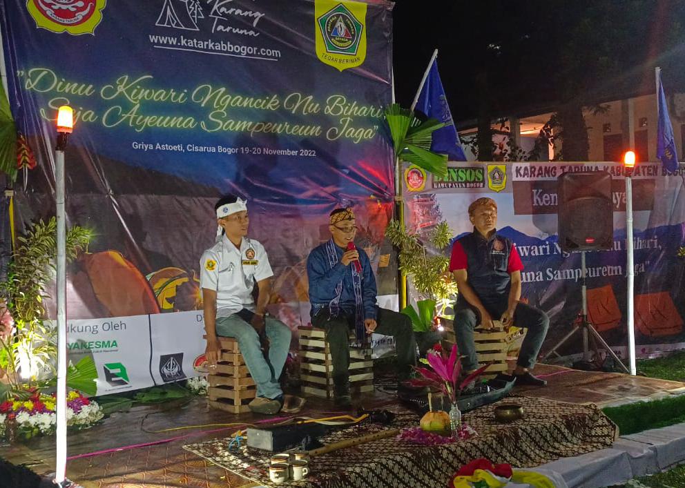 “Saya selaku ketua MPKT Kabupaten Bogor hadir memenuhi undangan pengurus harian Karang Taruna Kabupaten Bogor dan kebetulan Tema Budaya malam ini ada irisannya dengan jabatan saya sebagai kadisbudpar Kab.Bogor.Harapannya nah ini kegiatan bagus ya terlebih,dan sedikit sekali orang yang memperhatikan kebudayaan,ungkapnya,