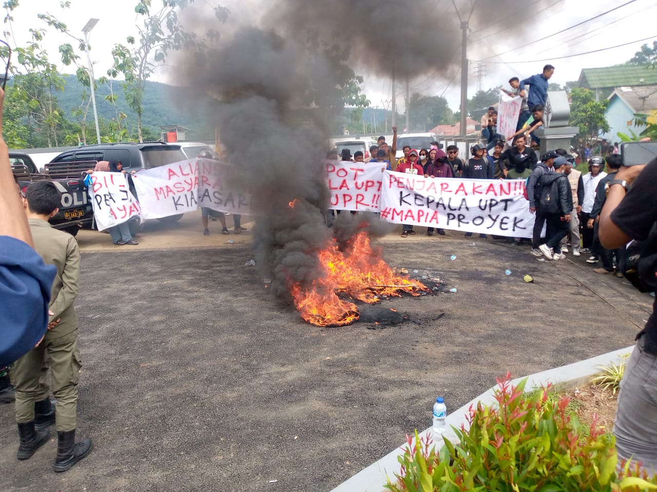 Ratusan warga yang mendatangi kantor UPT, membawa dan menuntut beberapa tuntutan salah satunya agar pembangunan jalan segera di selesaikan, dan Usut tuntas mafia Proyek, Penjarakan, Copot Kepala UPT nya.