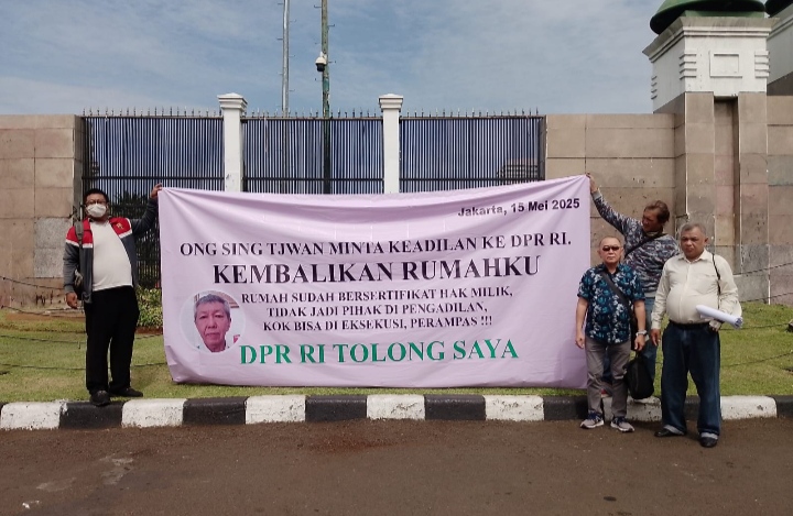 Aktivis hukum Gus Leman kembali menggelar aksi di Jakarta untuk memperjuangkan keadilan bagi kliennya, Ong Sing Tjwan. Aksi berlangsung di depan Gedung DPR-MPR RI pada Senin pagi, pukul 10.00 WIB, dengan membawa spanduk dan diikuti sejumlah massa.