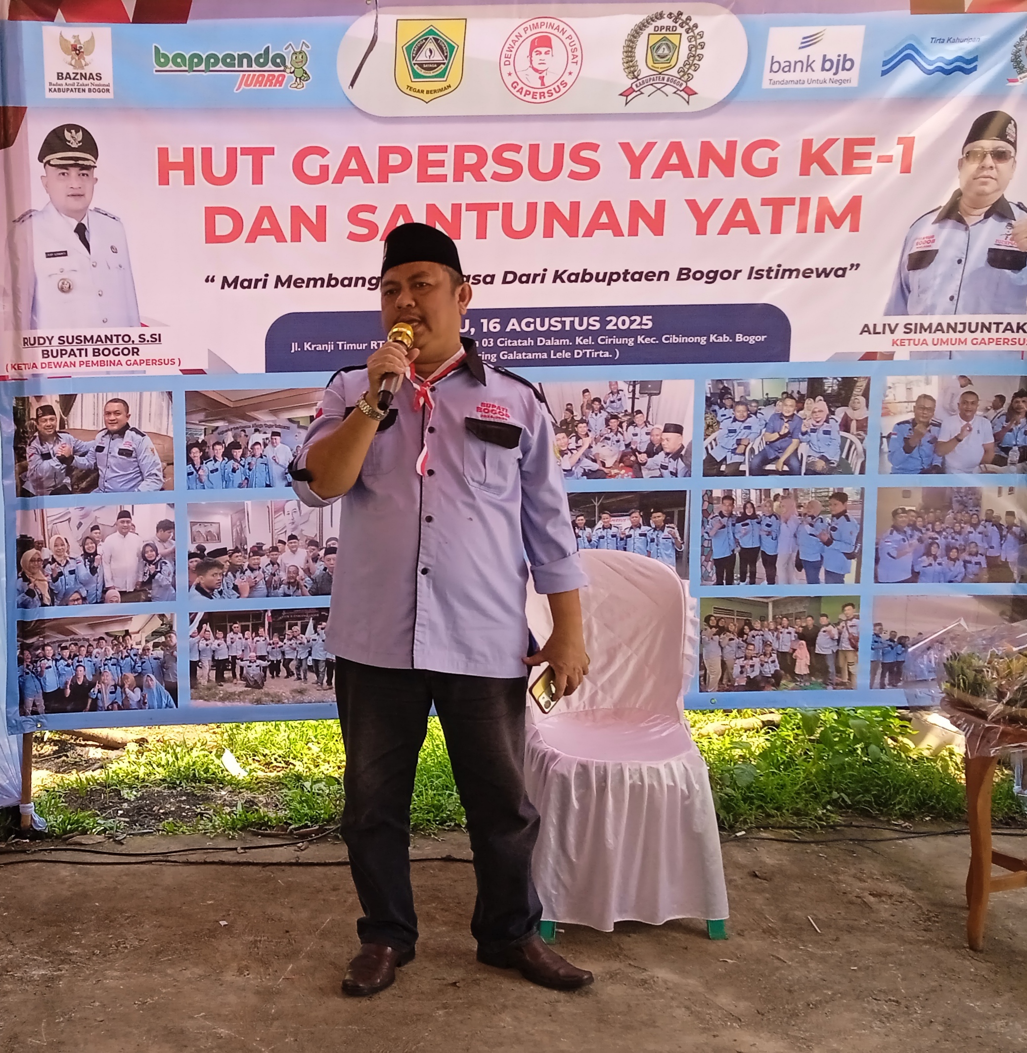 “Hari ini kita merayakan HUT pertama Gapersus sekaligus HUT ke-40 Bapak Rudy Susmanto yang sama-sama jatuh pada 15 Agustus 2025. Meski padat kegiatan, beliau akan menyempatkan hadir. Acara ini juga menjadi bagian semarak HUT ke-80 RI,” kata Aliv seraya meneriakkan pekik Merdeka!.